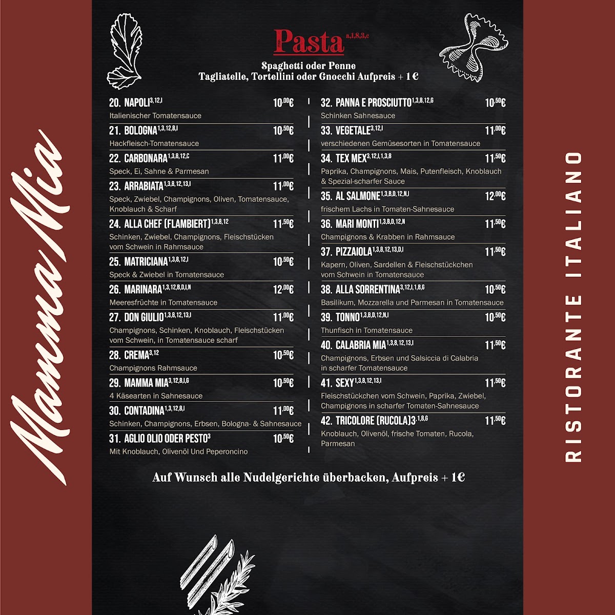 Overall, Mamma Mia Saarlouis delivers an exceptional menu with something for everyone, from delicious pizzas and pastas to satisfying meat and seafood dishes.